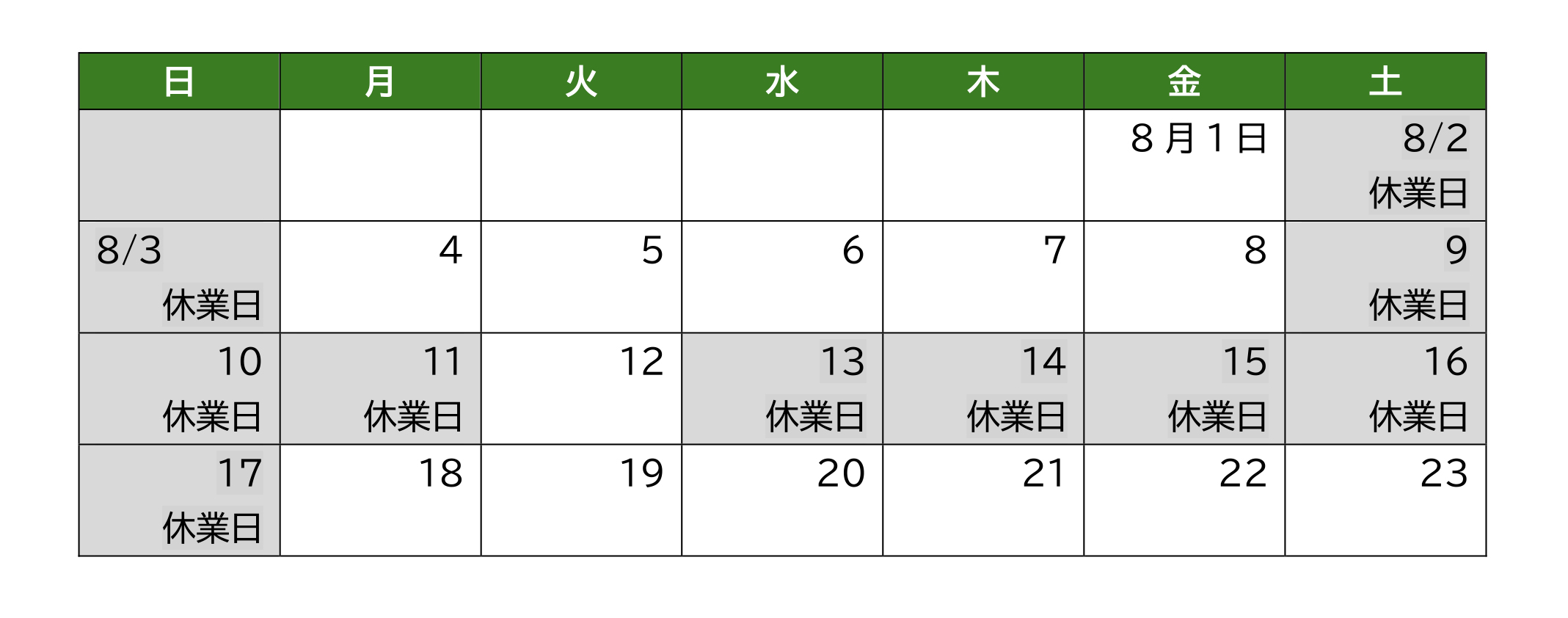 誠に勝手ながら、当社では下記の期間を 夏季休業 とさせていただきます。
