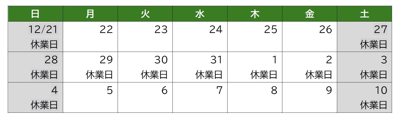 年末年始休業のお知らせ