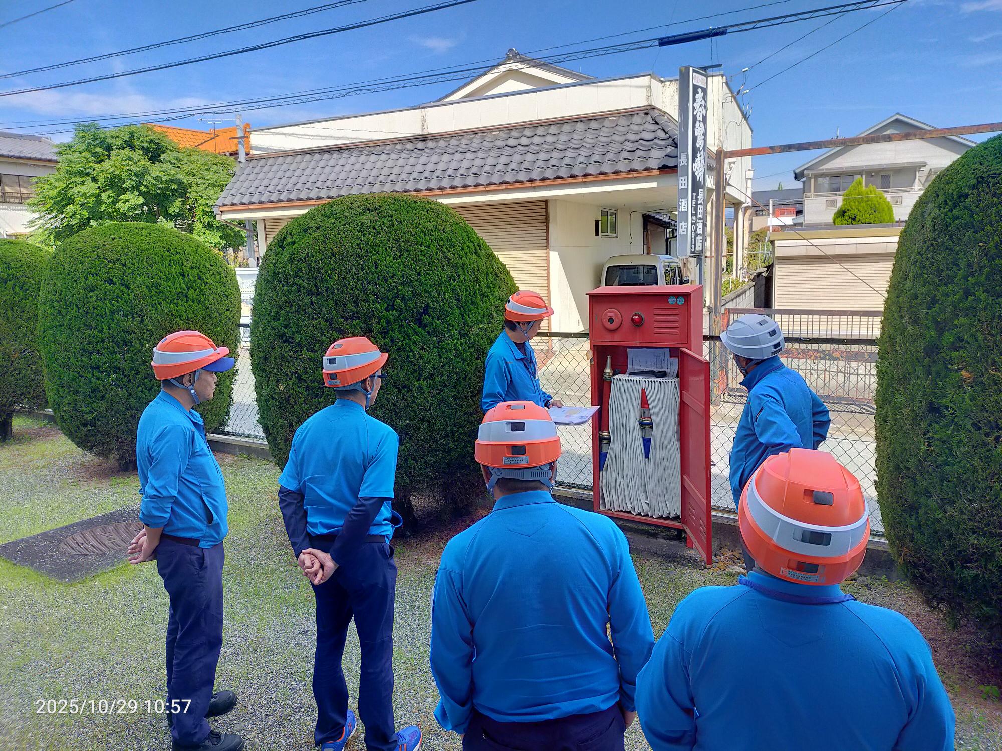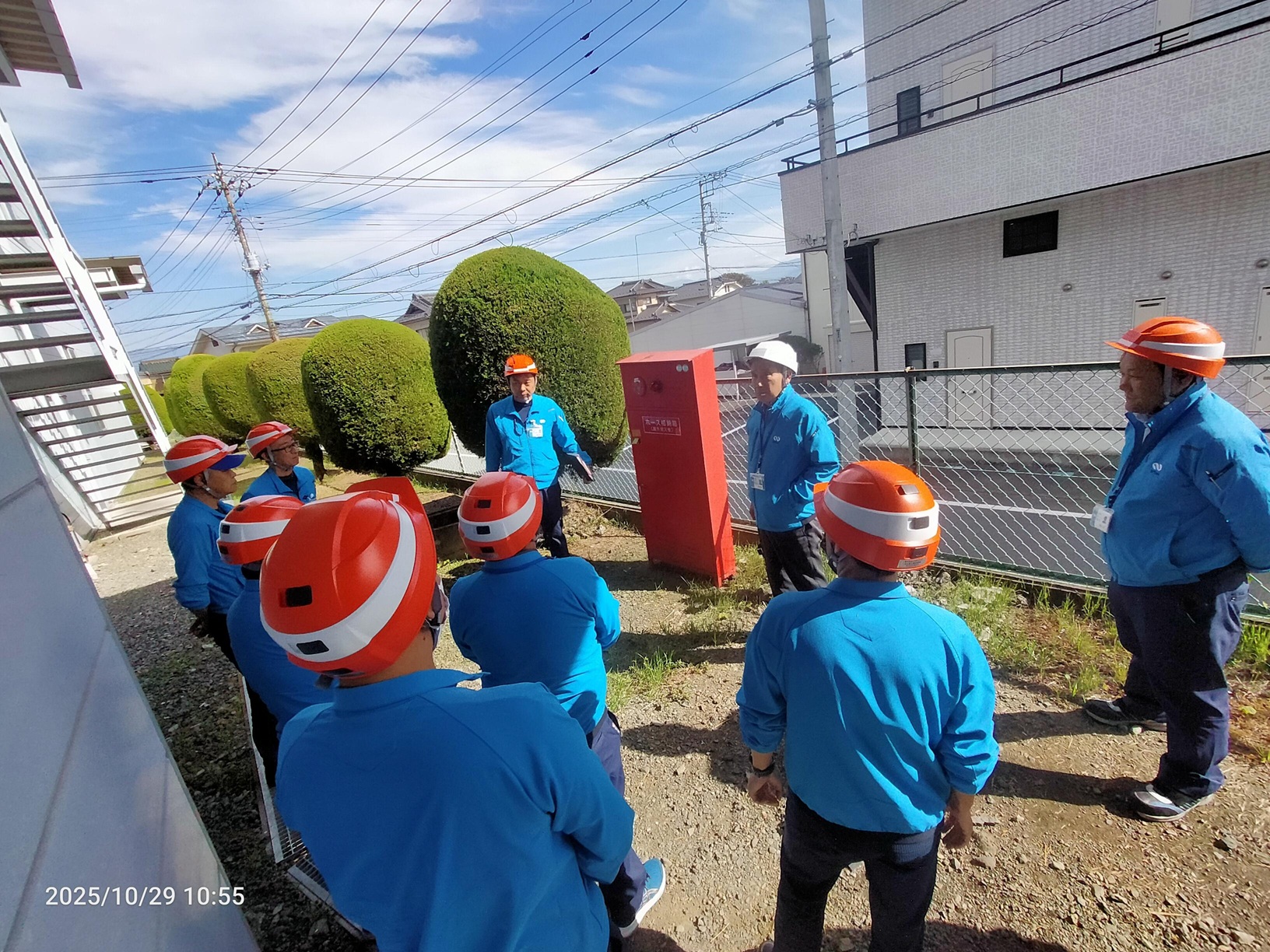 さらに、消火班による消火設備の点検や、安否確認システムを用いた応答テストも行い、火災や情報伝達といった二次災害への備えについても確認を行いました。実際に目で見た上で一連の流れを確認することで、従業員同士の連携強化にもつながる訓練となりました。